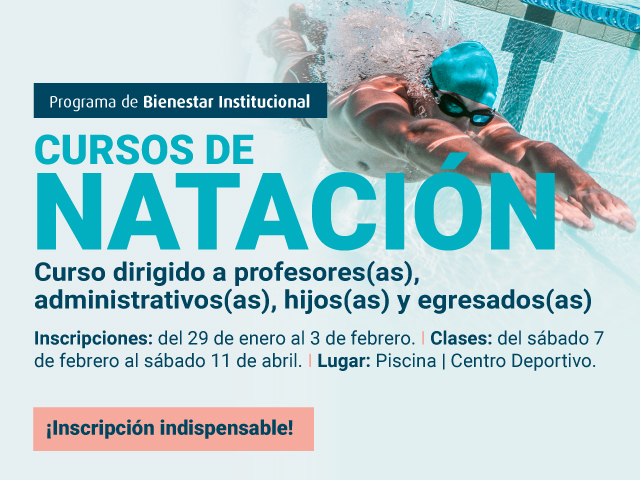 Ten en cuenta que los cupos son limitados y que el pago debe realizarse una vez se valide la inscripción. El curso de natación avanzada y mariposa está dirigido exclusivamente a egresados.